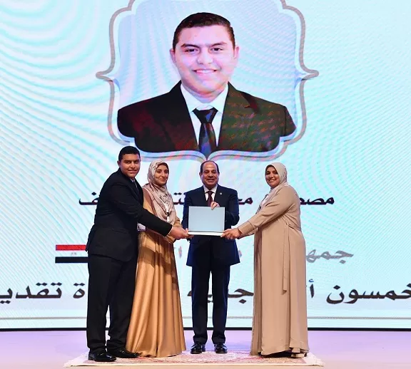 وقدم المحافظ خالص التهاني والتقدير للسيدة عايدة أحمد محمود مخلص، ونجليها جهاد محمد فتحي ناصف، ومصطفى محمد فتحي ناصف، لفوزهم بهذه الجائزة المشرفة،