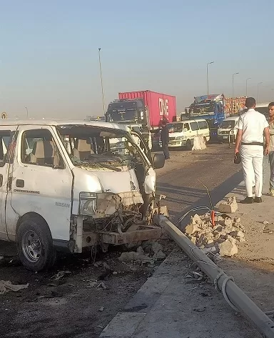 أُصيب 17 شخصًا بإصابات متفرقة إثر تصادم سيارة ميكروباص بعمود كهرباء على مدخل مدينة العاشر من رمضان بمحافظة الشرقية.