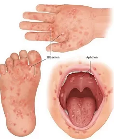 وتطمئن وزارة الصحة والسكان أولياء الأمور بأن هذا المرض فيروسي شائع يصيب الأطفال (خاصة دون سن الخامسة)، ويُعد من الحالات البسيطة. ويظهر المرض على شكل حمى خفيفة، وتقرحات في الفم، وطفح جلدي على اليدين والقدمين.