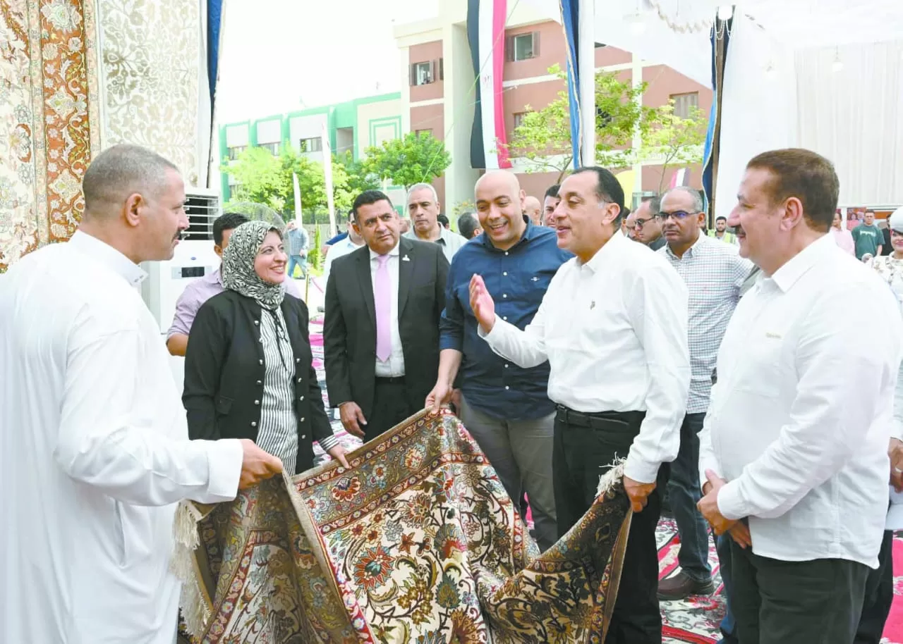 وتفقد رئيس الوزراء جانبا من أقسام المعرض وتعرف على منتجاته المتنوعة، وأدار حوارا مع العارضين والعارضات، حيث أشاد بجودة الصناعات الحرفية بالمعرض بشكل عام، والسجاد اليدوى بشكل خاص.