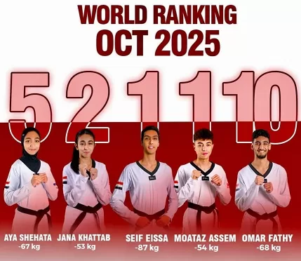 هنأ الدكتور أشرف صبحي، وزير الشباب والرياضة، لاعبي منتخب مصر للتايكوندو لتميزهم الكبير واعتلائهم مراكز متقدمة في التصنيف العالمي الصادر لشهر أكتوبر 2025.