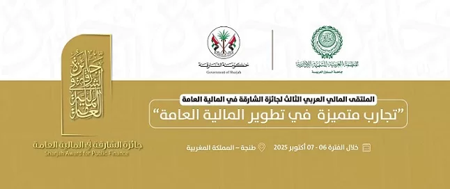 تنطلق غدًا الإثنين أعمال “الملتقى المالي العربي الثالث لجائزة الشارقة في المالية العامة: تجارب متميزة في تطوير المالية العامة” الذي تعقده المنظمة العربية للتنمية الإدارية– جامعة الدول العربية، بالتعاون مع حكومة الشارقة، وجائزة الشارقة في المالية العامة بدولة الإمارات العربية المتحدة، ومع غرفة التجارة والصناعة والخدمات لجهة طنجة تطوان- الحسيمة، وبرعاية وزيرة الاقتصاد والمالية المغربية، نادية فتاح، وذلك على مدار يومي 7،6 أكتوبر، في طنجة بالمملكة المغربية.