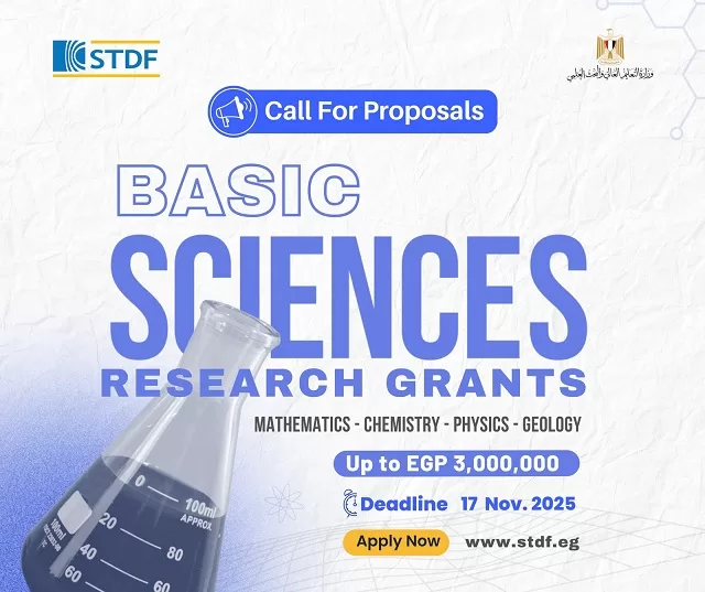 في هذا الإطار تعلن هيئة تمويل العلوم والتكنولوجيا والابتكار (STDF) عن فتح باب التقدم للنداء البحثي الرابع لبرنامج العلوم الأساسية، والذي يهدف إلى تحفيز البحث العلمي في هذا المجال الحيوي وبناء مجموعات بحثية مبتكرة قادرة على مواجهة التحديات بما ينعكس إيجابيًا على جودة البحث العلمي وأثره في مصر.