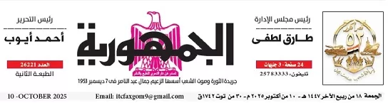 <!-- wp:heading {"level":3} --> <h3 class="wp-block-heading"><strong>تصفــح عـدد جـريدة الجمـهـورية ليوم الجمعة 10 أكتوبر 2025 عـبر <a href="http://algomhuria.gomhuriaonline.com/wp-content/uploads/2025/10/1010.pdf" target="_blank" rel="noreferrer noopener">الـرابط</a>:</strong></h3> <!-- /wp:heading --> <!-- wp:image {"lightbox":{"enabled":false},"id":170835,"width":"840px","height":"auto","sizeSlug":"large","linkDestination":"custom","align":"center"} --> <figure class="wp-block-image aligncenter size-large is-resized"><a href="http://algomhuria.gomhuriaonline.com/wp-content/uploads/2025/10/1010.pdf" target="_blank" rel=" noreferrer noopener"><img src="http://algomhuria.gomhuriaonline.com/wp-content/uploads/2025/10/1010-667x1024.webp" alt="" class="wp-image-170835" style="width:840px;height:auto"/></a></figure> <!-- /wp:image -->
