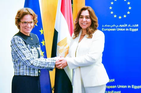 التقت الدكتورة منال عوض، وزيرة التنمية المحلية والقائمة بأعمال وزير البيئة، جيسيكا روزويل مفوضة البيئة بالاتحاد الأوروبي، وذلك بحضور أنجلينا أيخهورست سفيرة الاتحاد الأوروبي بالقاهرة. جاء اللقاء على هامش فعاليات أسبوع القاهرة الثامن للمياه، الذي يُعقد في الفترة من 12 إلى 16 أكتوبر الجاري تحت شعار “حلول مبتكرة من أجل الصمود المناخي واستدامة المياه