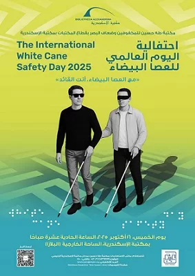 تنظم مكتبة الإسكندرية من خلال مكتبة طه حسين للمكفوفين وضعاف البصر بقطاع المكتبات، بالتعاون مع مؤسسة “كُن عيني”، احتفالية بمناسبة اليوم العالمي للعصا البيضاء، وذلك يوم الخميس الموافق 16 أكتوبر 2025 في تمام الساعة الحادية عشرة صباحًا، بالساحة الخارجية (البلازا) بالمكتبة.