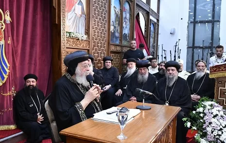 جاء ذلك قبل بدء عظة البابا في اجتماع الأربعاء مساء اليوم الذي عقده في كنيسة السيدة العذراء والقديس القوي الأنبا موسى بمنطقة النهضة، التابعة لقطاع كنائس مدينة السلام والحرفيين.