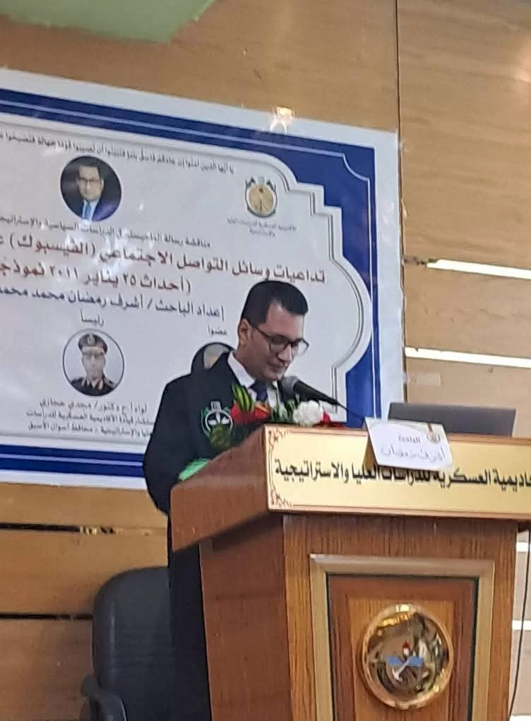 تناولت الرسالة الدور المحوري الذي لعبته وسائل التواصل خلال أحداث 25 يناير 2011، وكيف تحولت من منصة للتواصل الاجتماعي إلى أداة للحشد والتعبئة السياسية، مُؤكدة أن هذا التحول خلق تحديًا جديدًا أمام منظومة الأمن القومي المصري، إذ أصبح الفضاء الإلكتروني ساحة موازية للصراع السياسي والاجتماعي.
