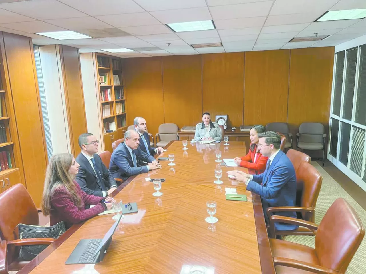 على هامش الاجتماعات السنوية لصندوق النقد الدولى ومجموعة البنك الدولى بالعاصمة الأمريكية واشنطن، عقد المهندس حسن الخطيب، وزير الاستثمار والتجارة الخارجية، اجتماعاً مع قيادات شركة «بوينج» العالمية بمقر السفارة المصرية بواشنطن، لبحث سبل تعزيز التعاون الإستراتيجى بين الجانبين فى قطاع الطيران والنقل الجوي.