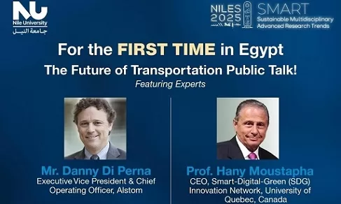 تستضيف جامعة النيل يوم السبت 25 أكتوبر الجاري الخبير العالمي داني دي بيرنا، نائب الرئيس التنفيذي والرئيس التنفيذي للعمليات بشركة ألستوم الفرنسية، متحدثًا عن مستقبل النقل الذكي والمستدام في العالم، ومستعرضًا مشروع المونوريل المصري الوطني كنموذج رائد للبنية التحتية الذكية في الشرق الأوسط وأفريقيا.