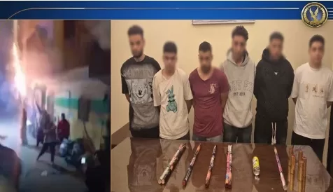 بالفحص، أمكن تحديد الظاهرين بمقطع الفيديو (5 أشخاص – لاثنين منهم معلومات جنائية – مُقيمون بدائرة قسم شرطة بولاق الدكرور بالجيزة). تم القبض عليهم، وبحوزتهم (ألعاب نارية – زجاجة بها مادة قابلة للاشتعال). وبمواجهتهم، اعترفوا بارتكاب الواقعة وسط الشارع، مُعرِّضين حياة الأهالي للخطر، احتفالًا باستهتار شديد بالإفراج عن أحدهم على ذمة إحدى القضايا.