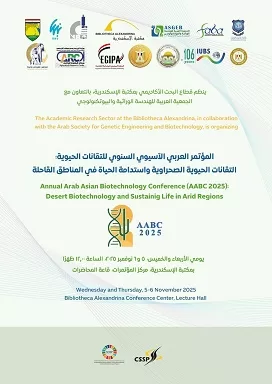 تشارك مكتبة الإسكندرية في تنظيم المؤتمر العربي الآسيوي السنوي للتكنولوجيا الحيوية، وذلك بالتعاون مع الجمعية العربية للهندسة الوراثية والبيوتكنولوجي بالمركز القومي للبحوث.