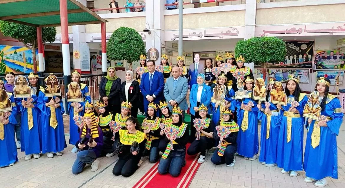 سادت الفقرات المقدَّمة بالطابور أجواء احتفالية مصرية تعبِّر عن الحضارة المصرية القديمة، وقد تم عرض فيديو يسرد تاريخ الملوك العظام بمصر القديمة.أثنى الرشيدي على ما قدمته طالبات المدرسة من عروض، مبديًا إعجابه بالزي الذي ارتدينه والذي يعبِّر عن الهوية المصرية التي تمتد جذورها إلى عمق التاريخ.مؤكدًا أن مكانة المرأة المصرية ثابتة راسخة عبر التاريخ كشريكة وصانعة للأمجاد والحضارة، داعيًا طالبات المدرسة إلى الحفاظ على هويتهن الوطنية، فهن امتداد لثقافة وحضارة أمة عريقة نشأت قبل أن يولد التاريخ ذاته.