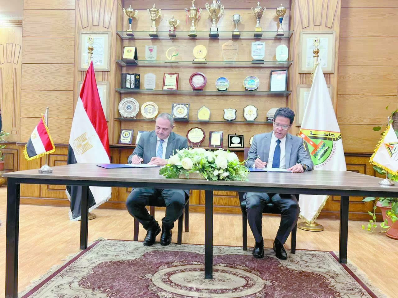 وقع الدكتور ناصر الجيزاوى رئيس جامعة بنها والمهندس طارق لطفى رئيس مجلس إدارة مؤسسة دار التحرير للطبع والنشر بروتوكول تعاون بين الجامعة ومؤسسة دار التحرير للطبع والنشر «دار الجمهورية للصحافة» فى إطار التعاون المشترك بين الجانبين.