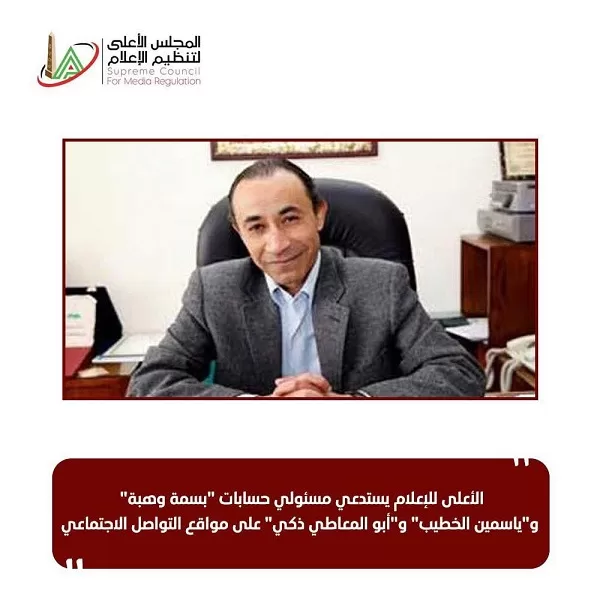 وشمل القرار استدعاء المسؤول عن إدارة حساب الإعلامية بسمة وهبة على مواقع التواصل الاجتماعي، للوقوف على ما تضمنته بعض المواد المنشورة من مخالفات للمعايير والضوابط المهنية. كما تقرر استدعاء المسؤول عن إدارة حساب الإعلامية ياسمين الخطيب، لذات الأسباب المتعلقة بتجاوزات رُصدت في بعض المحتويات المنشورة.