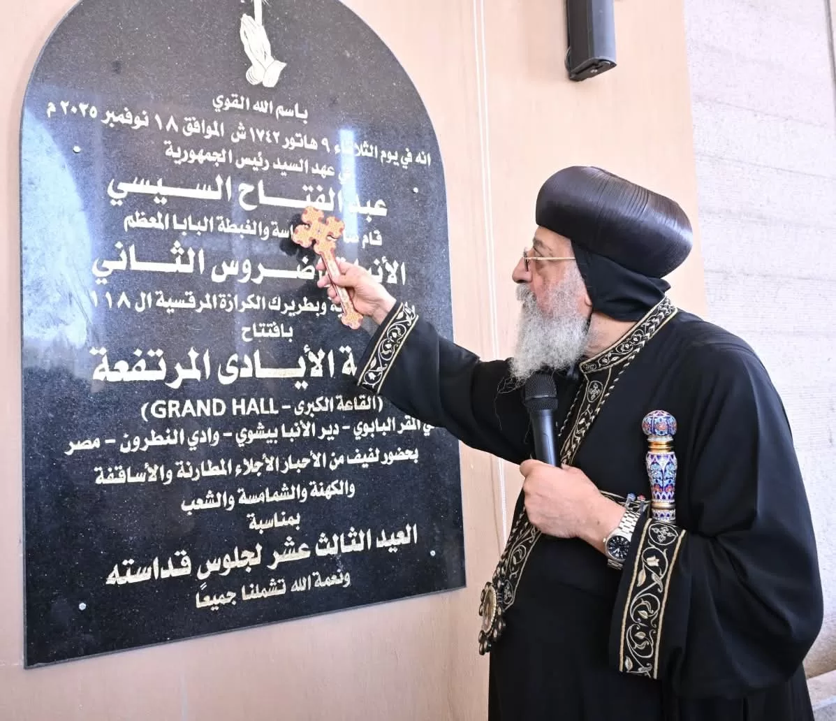 افتتح قداسة البابا تواضروس الثاني، بابا الإسكندرية وبطريرك الكرازة المرقسية، اليوم أكاديمية القديس مرقس القبطية بمركز “لوجوس” بدير القديس الأنبا بيشوي في وادي النطرون، وذلك عقب قداس الذكرى الـ 13 لتجليسه.وأزاح البابا الستار عن اللوحة التذكارية التي تؤرخ لافتتاح الأكاديمية، بحضور أعضاء المجمع المقدس.وتفقد البابا مرافق الأكاديمية، مقدماً شرحاً لأهم معالمها.