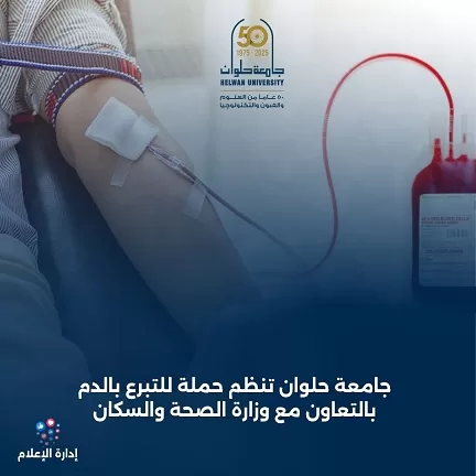 في إطار التعاون المستمر بين جامعة حلوان ووزارة الصحة والسكان أطلق قطاع شؤون خدمة المجتمع وتنمية البيئة بالجامعة حملة للتبرع بالدم داخل الحرم الجامعي بالتعاون مع المركز القومي لخدمات نقل الدم وذلك على مدار أسبوع كامل.