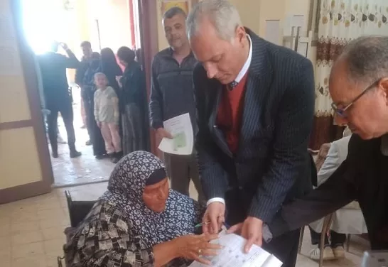 المستشار محمد سليم يساعد مسنة قعيدة للإدلاء بصوتها فى انتخابات النواب بكفرالشيخ