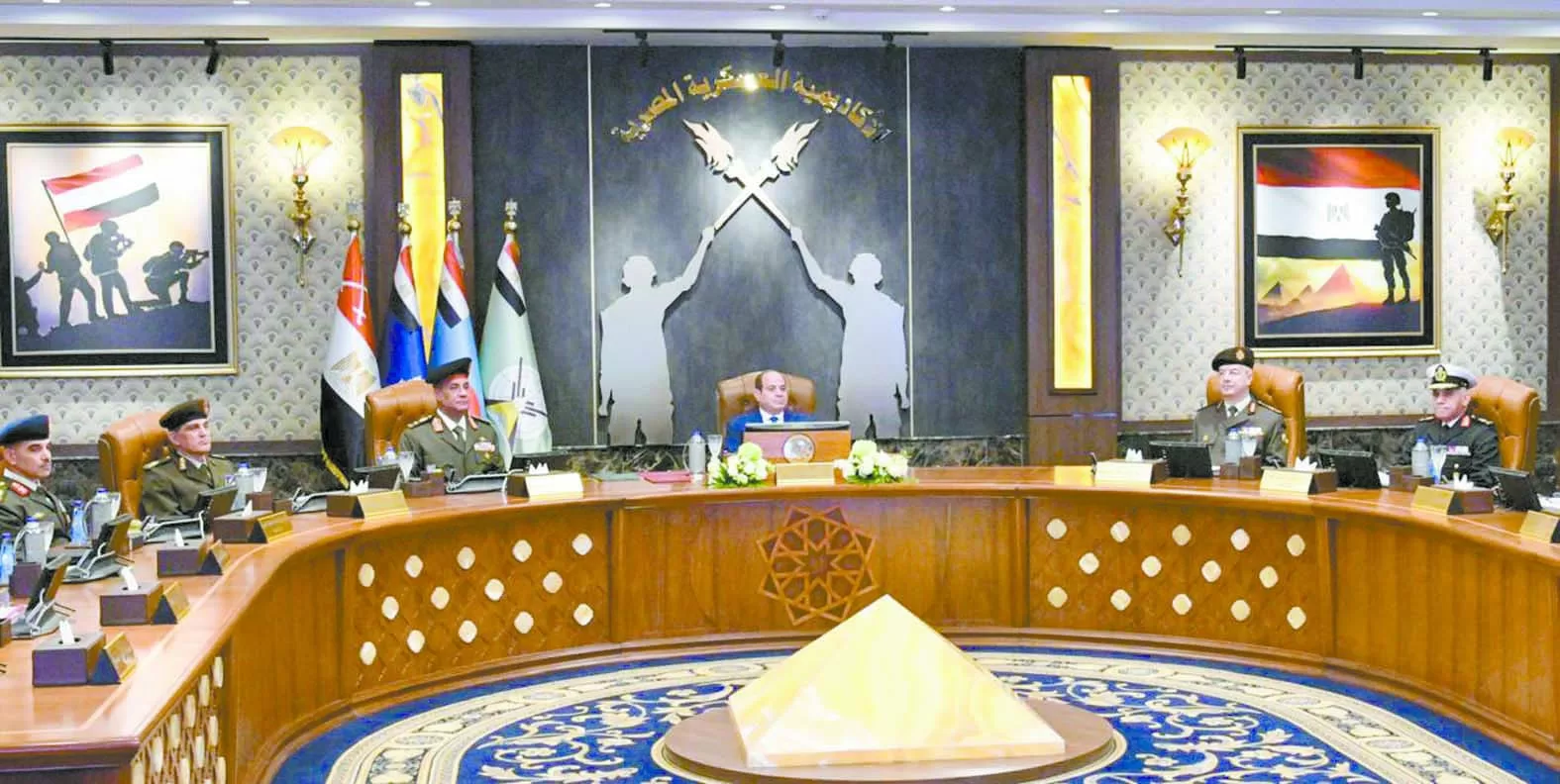 ذكر المتحدث الرسمى أن السيد الرئيس قد تناول وجبة الغداء مع مدير الأكاديمية العسكرية المصرية، ومديرى الكليات العسكرية، ووزير الأوقاف، والطلبة الدارسين بالأكاديمية، حيث دار نقاش تفاعلى بين السيد الرئيس وطلبة الاكاديمية، وأشار خلاله السيد الرئيس إلى أنه يمكن للطلبة المؤهلين من الإناث والذكور الالتحاق بكلية الطب العسكرى سواء بالصفة العسكرية أو بالصفة المدنية، معاودا سيادته طمأنة أسر الطلبة بأن الأمور تدار فى الكلية بشكل محكم ومدروس وفقا لأعلى المعايير.. كما أكد السيد الرئيس على أهمية الاهتمام بنشر ثقافة الرياضة، خاصة فيما بين النشء، كما أعرب عن الانفتاح لأى اقتراح إيجابى وقابل للتنفيذ ينطوى على مشاركة اتحادات الطلاب بالجامعات فى كافة المسائل المتعلقة بالشباب واتخاذ القرارات ذات الصلة.