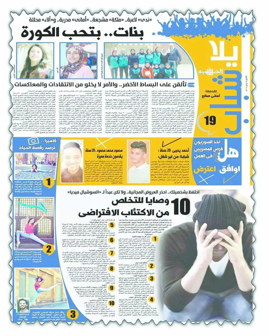 عادت صفحة الشباب بنيولوك إخراجيا وتحريريا فى 15يناير 2018تحت رئاسة تحرير الأستاذ عبد الرازق توفيق ..لتتحول إلى «يلا شباب » فى موضوعات متنوعة وأبواب جديدة مع استمرار كلام شبابنا والكاميرا .