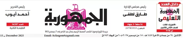 محمي: تصفــح عـدد جـريدة الجمـهـورية ليوم الإثنين 15 ديسمبر 2025