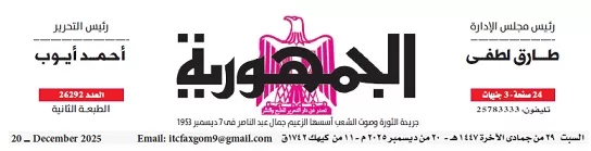 العـدد الورقـي محمي: تصفـح العـدد الأسبوعـي لجريدة الجمـهـورية اليوم الخميس 18 ديسمبر 2025 18 ديسمبر، 2025