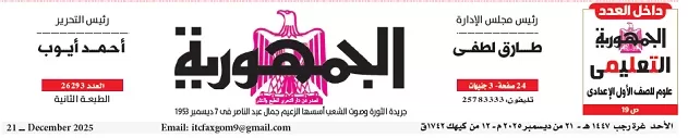 العـدد الورقـي محمي: تصفـح العـدد الأسبوعـي لجريدة الجمـهـورية اليوم الخميس 18 ديسمبر 2025 18 ديسمبر، 2025