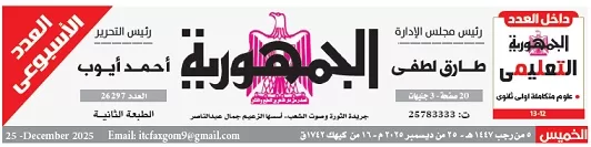 العـدد الورقـي محمي: تصفــح عـدد جـريدة الجمـهـورية ليوم السبت 27 ديسمبر 2025 عـبر الـرابط: 27 ديسمبر، 2025