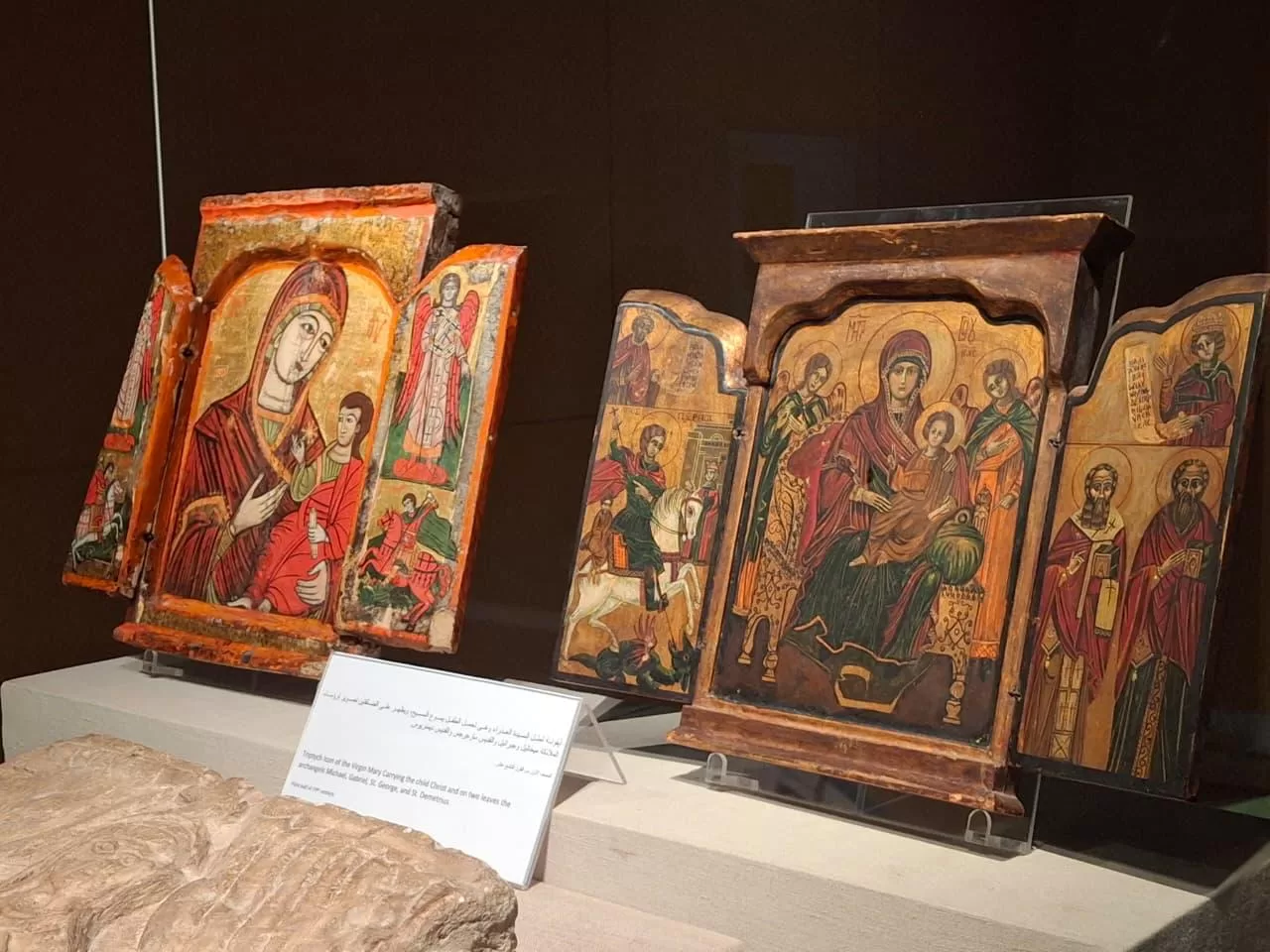 ومن جانبها، قالت الدكتورة نشوى جابر، نائب الرئيس التنفيذي للشؤون الأثرية، إن المعرض يضم مجموعة متميزة ونادرة من روائع الفن القبطي تُعرض لأول مرة، تشمل أيقونات ومخطوطات قبطية ومشغولات فنية كانت تُستخدم في الأديرة والكنائس، من أبرزها أيقونة لميلاد السيدة العذراء، ومنظر حجري يُجسّدها وهي ترضع السيد المسيح؛ بما يعكس ثراء هذا التراث وقيمته الفنية والرمزية.