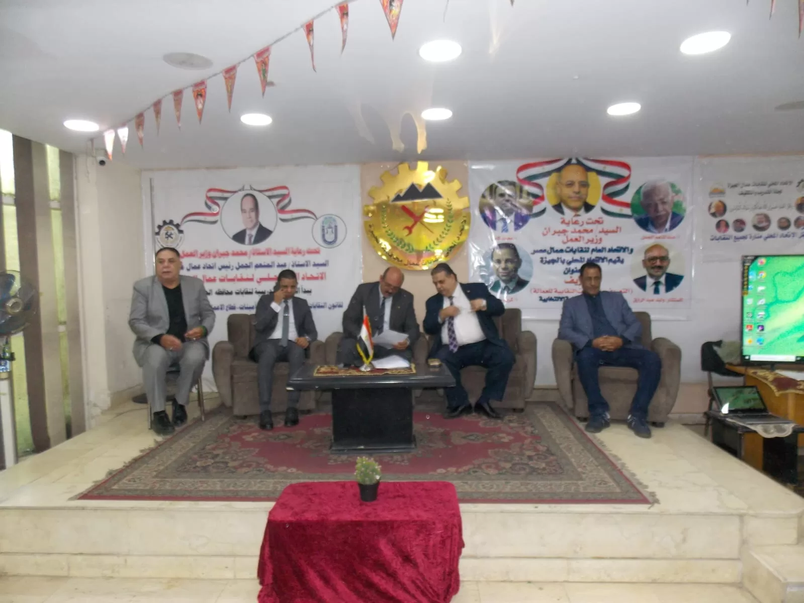 أشرف على تنظيم الندوة مجلس إدارة الاتحاد المحلي لعمال الجيزة، وفي مقدمتهم: