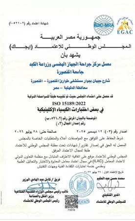 أعلنت جامعة المنصورة عن تجديد اعتماد المجلس الوطني للاعتماد (EGAC) لمعامل مركز جراحة الجهاز الهضمي وزراعة الكبد، وذلك وفقًا للمواصفة الدولية ISO 15189:2022 في مجال اختبارات الكيمياء الإكلينيكية؛ بما يعكس التزام المركز المستمر بتطبيق أعلى معايير الجودة والكفاءة الفنية في الخدمات المعملية المقدمة.