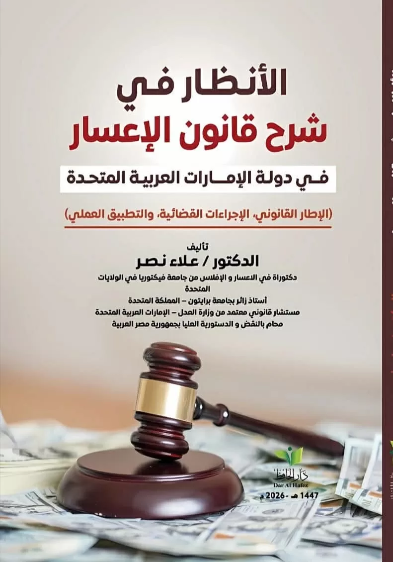 أصدر الخبير والمستشار القانوني د.علاء نصر كتاباً قانونياً جديداً بعنوان الأنظار في شرح قانون الإعسار في دولة الإمارات العربية المتحدة، يقدّم من خلاله معالجة قانونية تحليلية متعمقة لنظام الإعسار المطبق في دولة الإمارات، ويشكّل إضافة نوعية للمكتبة القانونية المتخصصة في التشريعات المالية والاقتصادية ذات الصلة بالأفراد غير التجار.