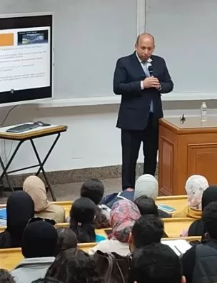 وخلال جولته التفقدية داخل المدرجات، أجرى الدكتور حسام صلاح حواراً مفتوحاً مع الطلاب، أوضح خلاله ملامح الاستراتيجية التعليمية للكلية، والتي ترتكز على: