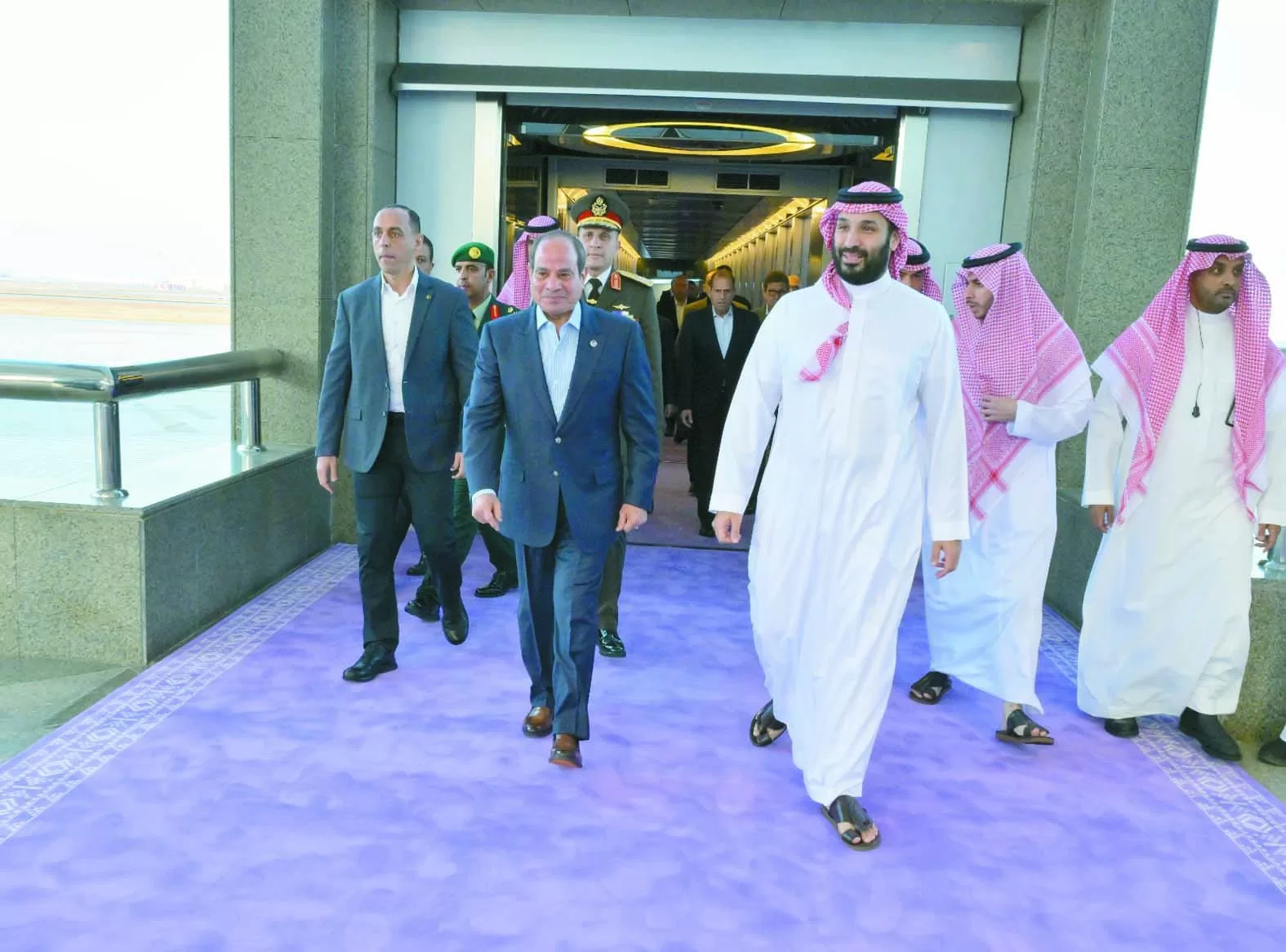 وكان الرئيس السيسى قد وصل امس، المملكة العربية السعودية، فى زيارة أخوية حيث كان في الاستقبال لدى وصوله إلى مطار الملك عبد العزيز الدولى فى مدينة جدة، أخوه صاحب السمو الملكى الأمير محمد بن سلمان، إلى جانب السفير المصرى فى الرياض، والقنصل العام المصري فى جدة، وأعضاء السفارة المصرية بالرياض.