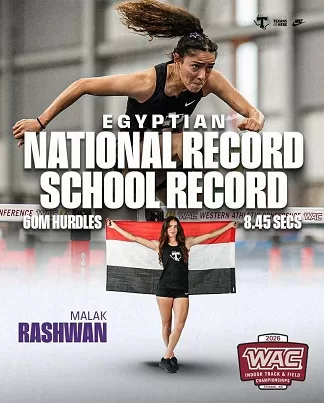 ملك أيمن تُحطم الرقم القياسي المصري في سباق 60م حواجز بالولايات المتحدة