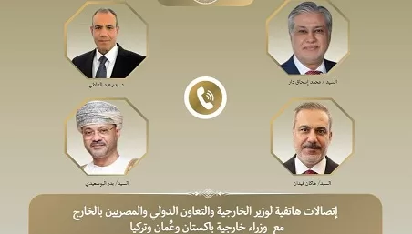 جرت اتصالات هاتفية بين الدكتور بدر عبد العاطي وزير الخارجية والتعاون الدولي والمصريين بالخارج، وكل من بدر بن حمد البوسعيدي وزير خارجية سلطنة عمان الشقيقة، ومحمد إسحاق دار نائب رئيس الوزراء وزير خارجية جمهورية باكستان الإسلامية، وهاكان فيدان وزير خارجية الجمهورية التركية، اليوم الاثنين، لبحث مستجدات الأوضاع الإقليمية والمساعي المبذولة لاحتواء التوتر بالمنطقة.